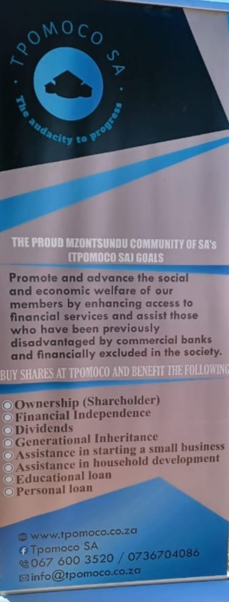 Sikwantu Community Primary Co-operative trading as TPOMOCOSA we began our journey in April 2024, based within the Alfred Nzo District Community. The South African landscape is changing rapidly, and so are the needs of our society, more especially those who have been previously disadvantaged and financially excluded. The economic scales in South Africa, are continuing to show a never ending imbalance. Against this background and perpetual trend of poverty, we as TPOMOCO SA, a prospective CFI came into being, to contribute towards bringing this situation into a halt. Geographically Alfred Nzo District Municipality is comprised of undeserved rural population. It is trailing behind in terms of development and public needs. It is against this background amongst other that TPOMOCO SA prospective CFI identified the need to bring financial services closer to the people, especially the communities of Phakade. Our location is central thus making us easily accessible to the community at large also minimizing travel costs to nil. Affording these communities an opportunity to avoid exorbitant interest rates from the commercial banks by offering reasonable interest rates to improve their financial lives.